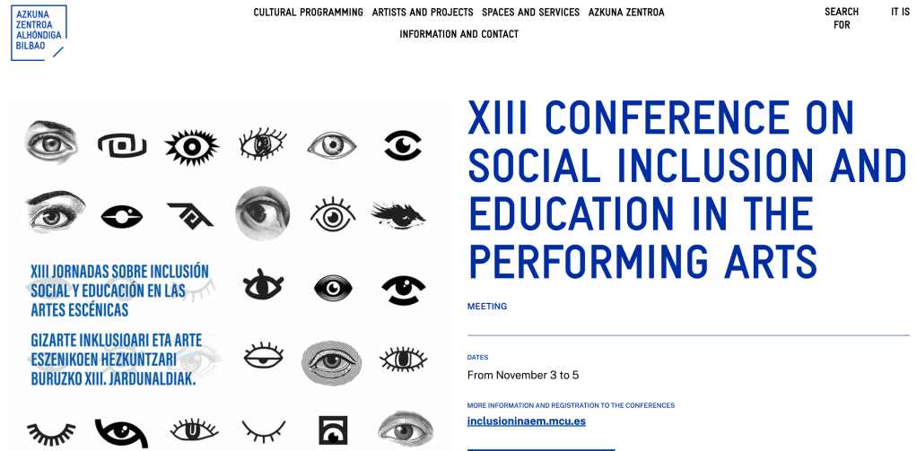 Funding for the conference appears to come from a variety of government and cultural institutions (Ministerio de Culturo y Deporte, Instituto Nacional de Las Artes Escenicas y de la Musica, La Red Española, Consejería de Cultura y Patrimonio Histórico de la Junta de Andalucía, Ayuntamiento De Murcia and of course the amazing Azkuna Zentroa Alhóndiga Bilbao).