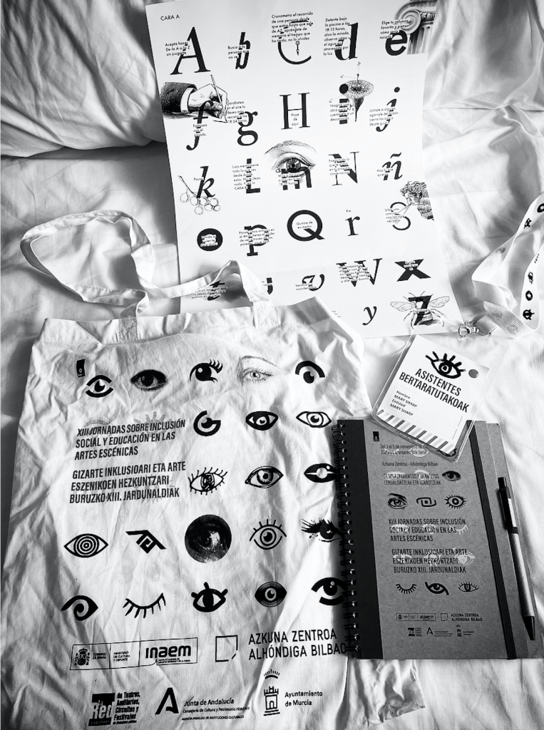 This week I had the great privilege of attending XIII Jornadas sobre Inclusión Social y Educación en las Artes Escénicas. I’m not exactly sure why, but for some reason, attending this conference made me feel like I’ve been standing still for 25 years. First I have to say how shocking it was to me that this conference was free with my library card except for a E5 fee to see one evening performance. When I arrived at the apertura mesa de acreditaciones to get my little badge, they were giving us the kind of swag that I usually receive at conferences I’ve paid hundreds of dollars to attend so my tiny American mind was blown.